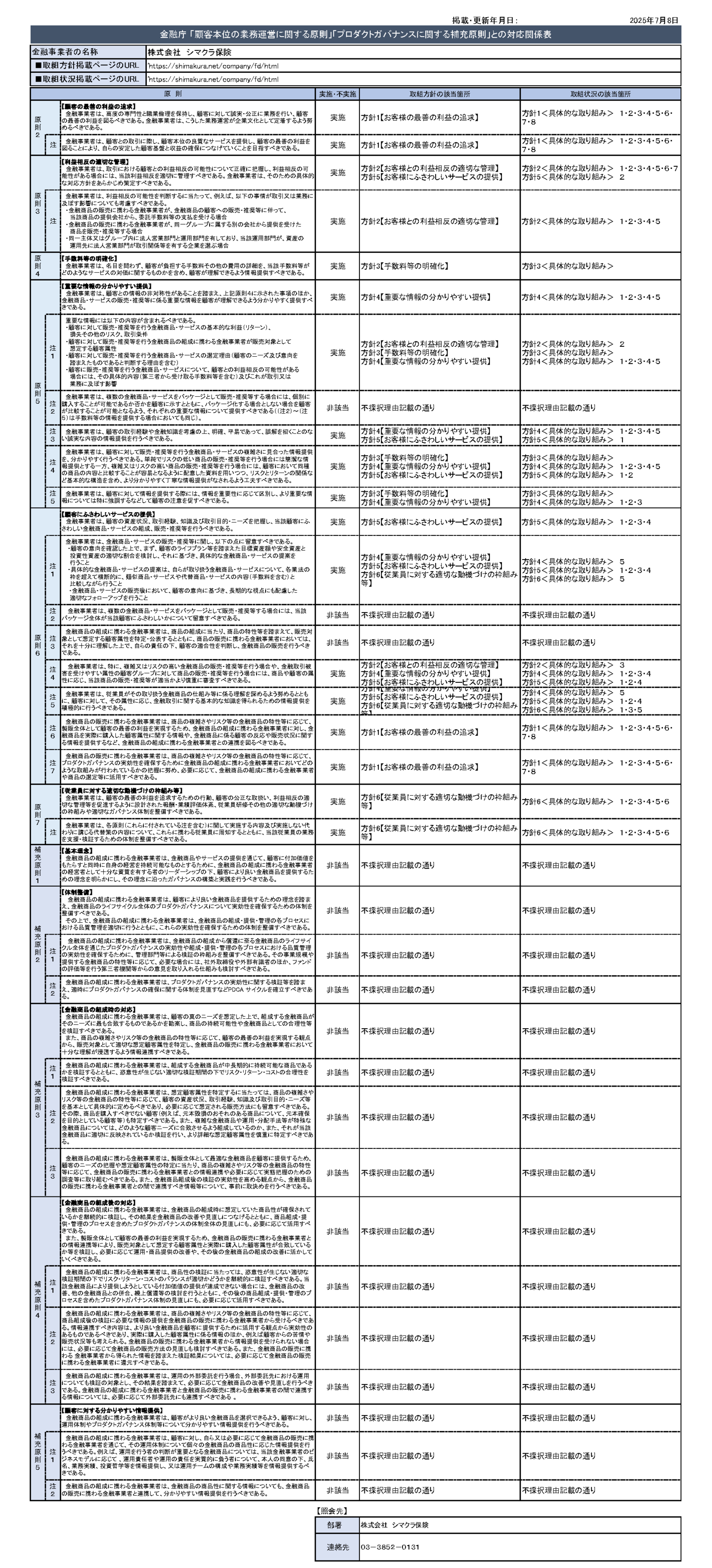 当社は、お客様に深く寄り添う事により、適切な商品提案・情報提供・保全業務を行い、満足を越えた感動を感じて頂くことがお客様の最善の利益と考えます。ひとりひとりのお客様の状況に応じて専門知識に基づいた有益で適切な情報提供を行い、ご意向を丁寧にお伺いしながらお客様へ最もふさわしい商品をご案内します。このような取り組みにより、顧客本位の業務運営を企業文化として定着させることが、当社の顧客基盤と収益確保につながるものと確信しています。