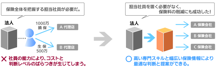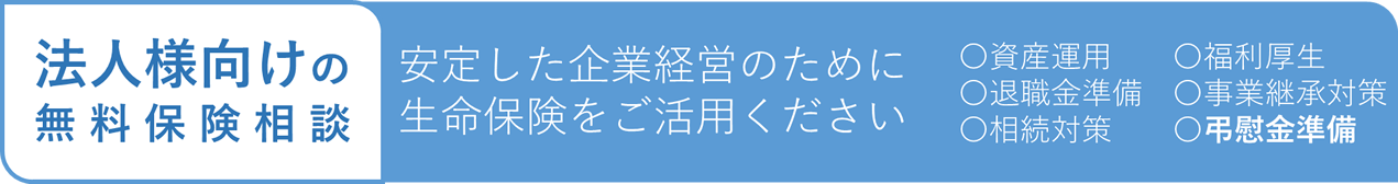 保険をかける目的、必要保険額の算出など、会社によって必要な保険はちがいます。当社では万が一に備え対処しやすい商品選択や、契約方法・ノウハウをご提案致します。