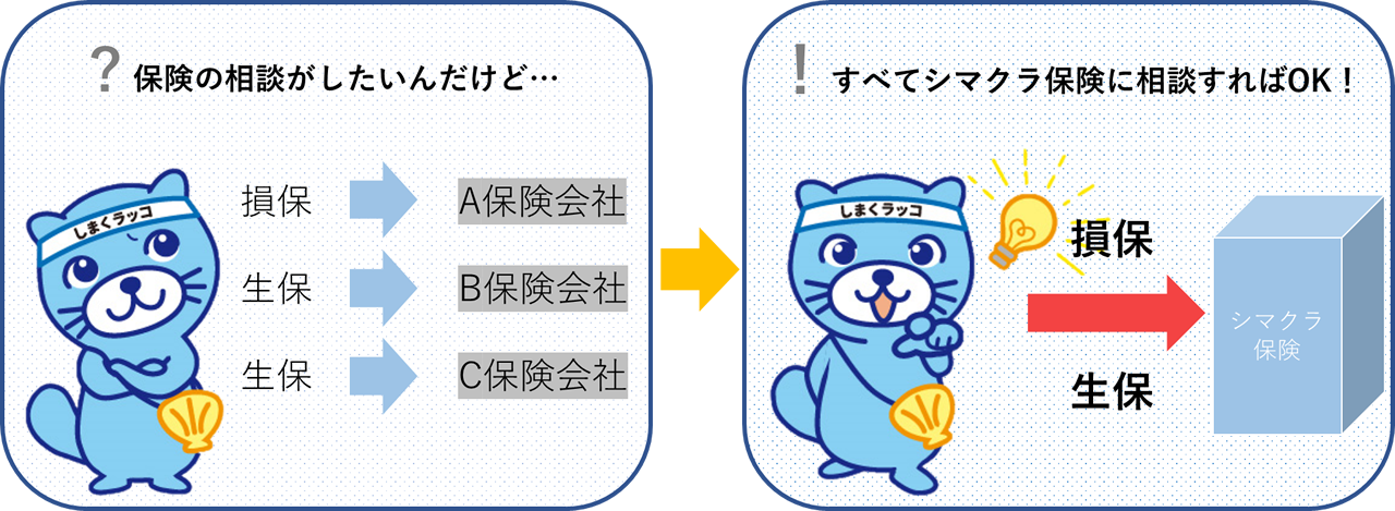 シマクラ保険では、常に最新情報を把握し、選択された優良保険会社の優良商品を、常時ご提案してまいります。
