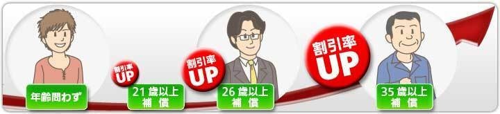 26歳以上補償と35歳以上補償には記名被保険者年齢区分が設けられているため、記名被保険者の年齢によっては26歳以上補償が35歳以上補償よりも保険料が割安になる場合があります。